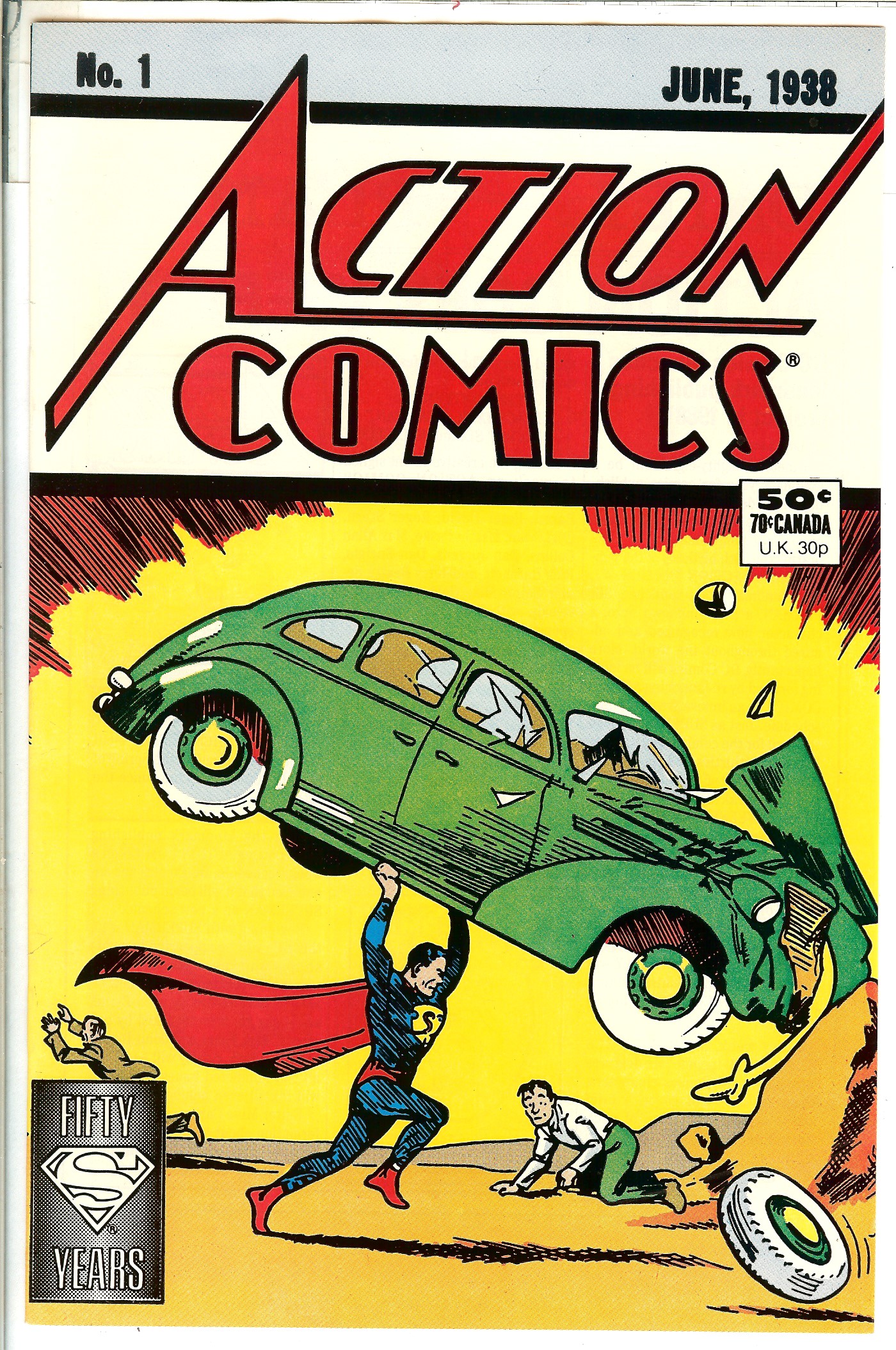 50c Glossy Cover Reprinting Entire Action #1 Superman Story, Celebrating 50 Year Anniversary 1988 J.Shuster Cover & Art