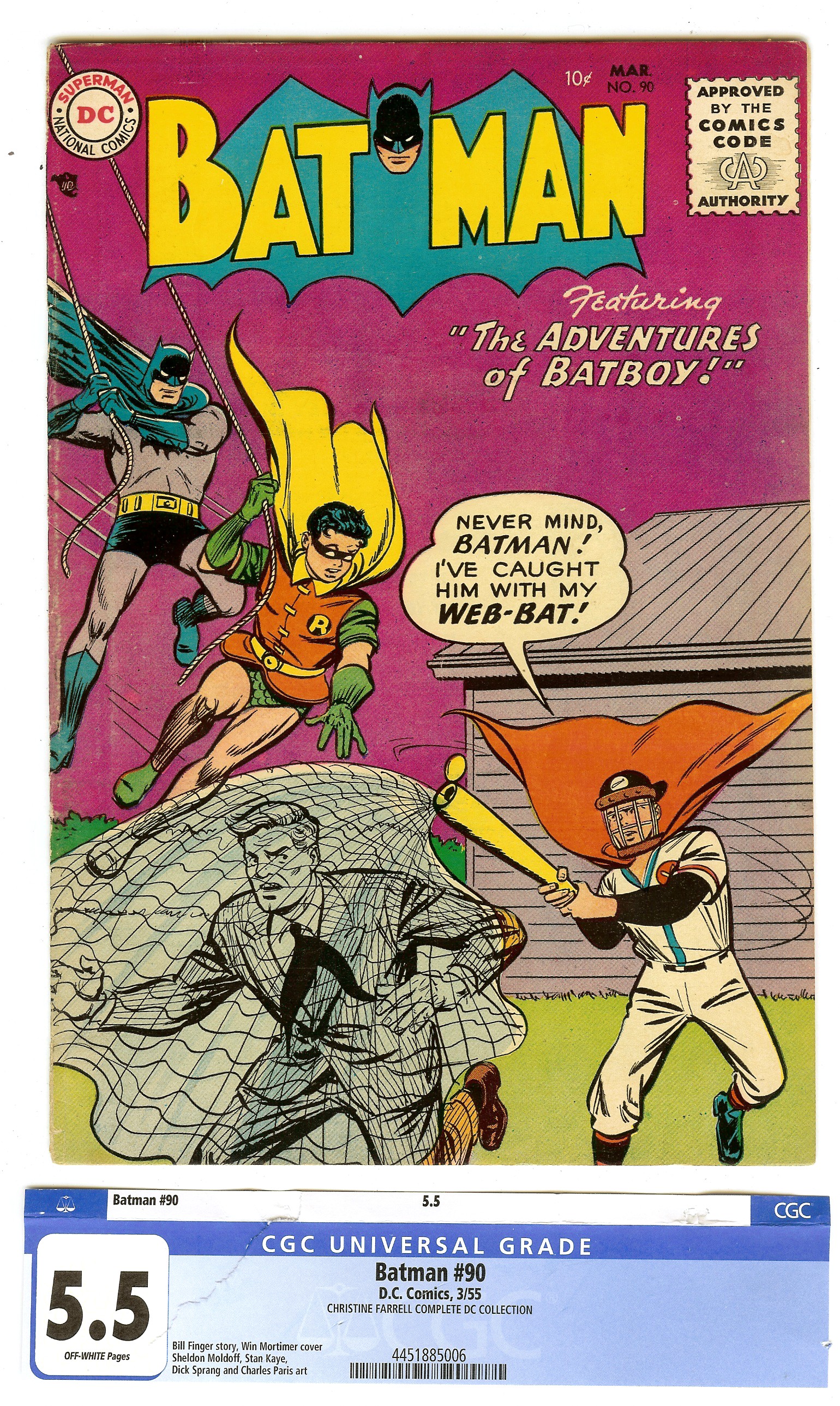 1st Post-Code Issue, Bat-Boy App. Baseball Cover 3/55 D.Sprang S.Moldoff Art W.Mortimer Cover -