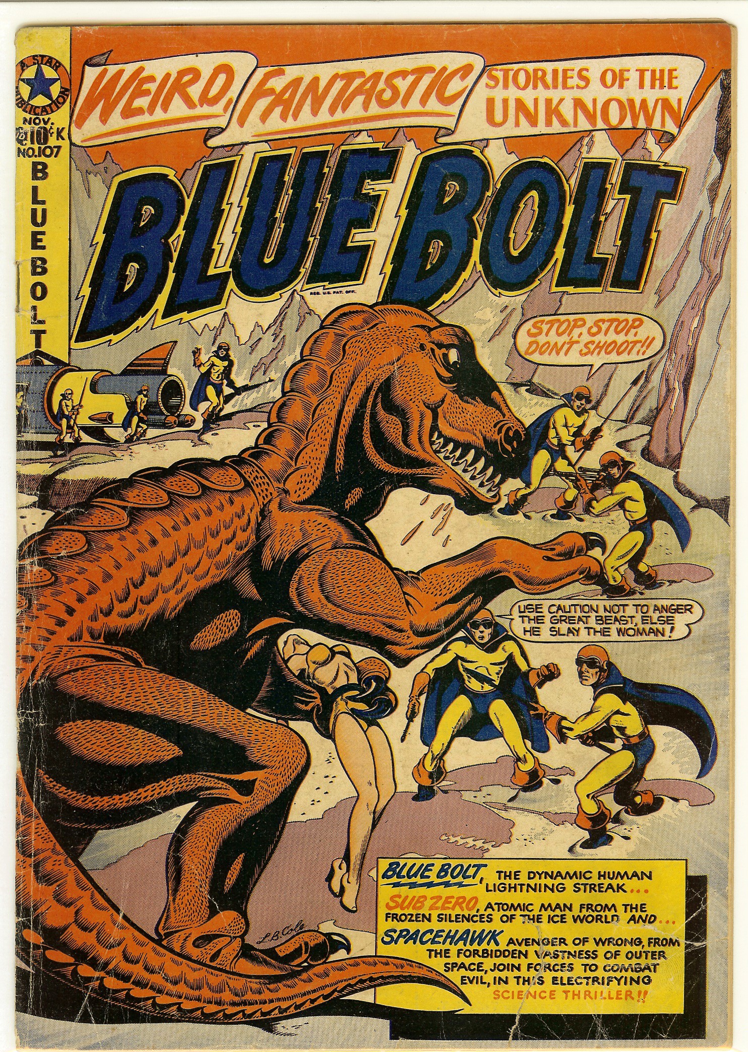 Dinosaur Cover, Sci-Fi Cover & Stories, Spacehawk, Sub-Zero Man & Blue Bolt Stories 11/49