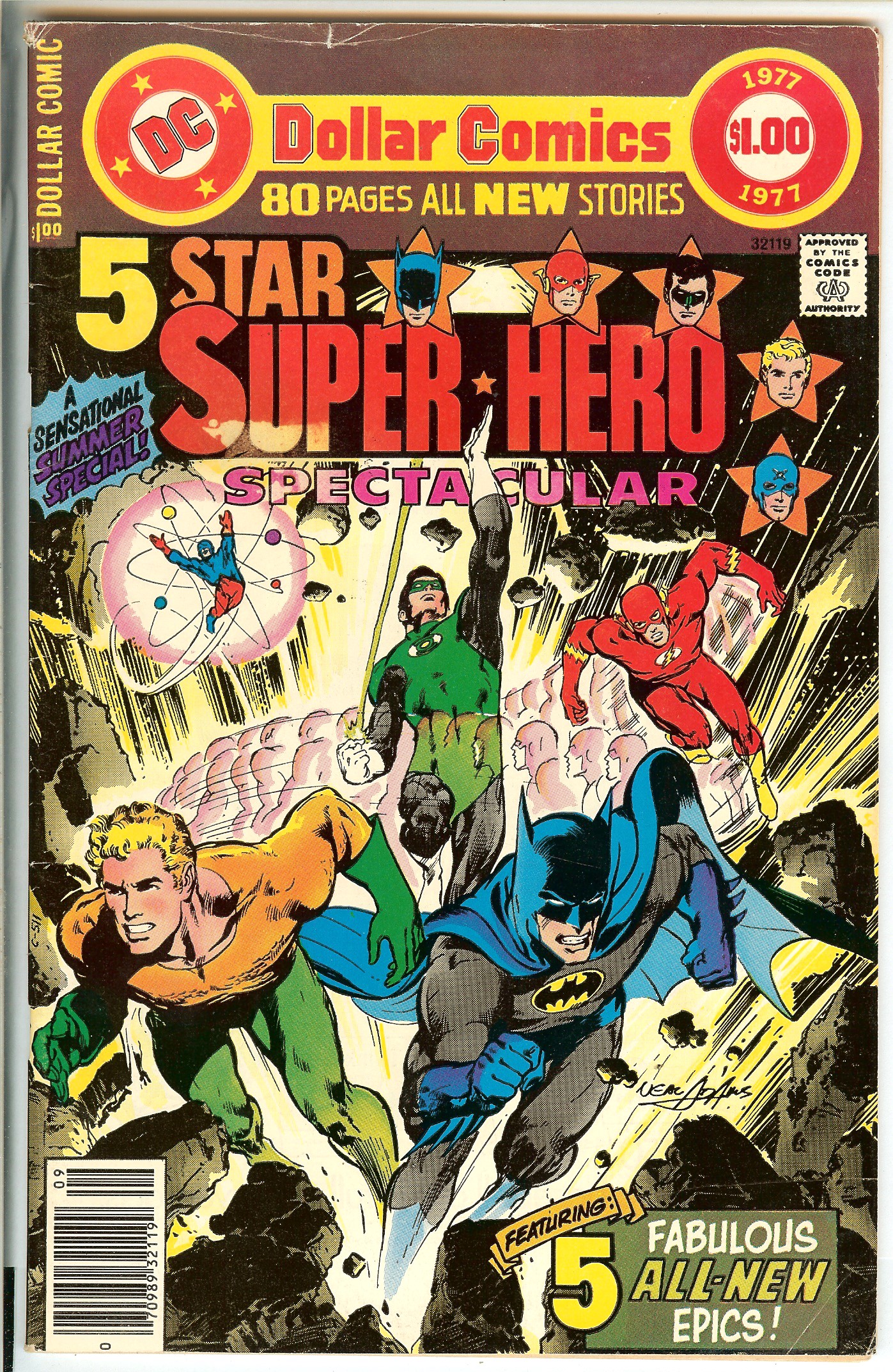 "5-Star Super-Hero Spectacular" New Aquaman, Batman, Green Lantern, Flash & Atom Stories, Kid Flash, Alfred, Kobra & 1st Patty Spivot [Ms. Flash] App. 9/77