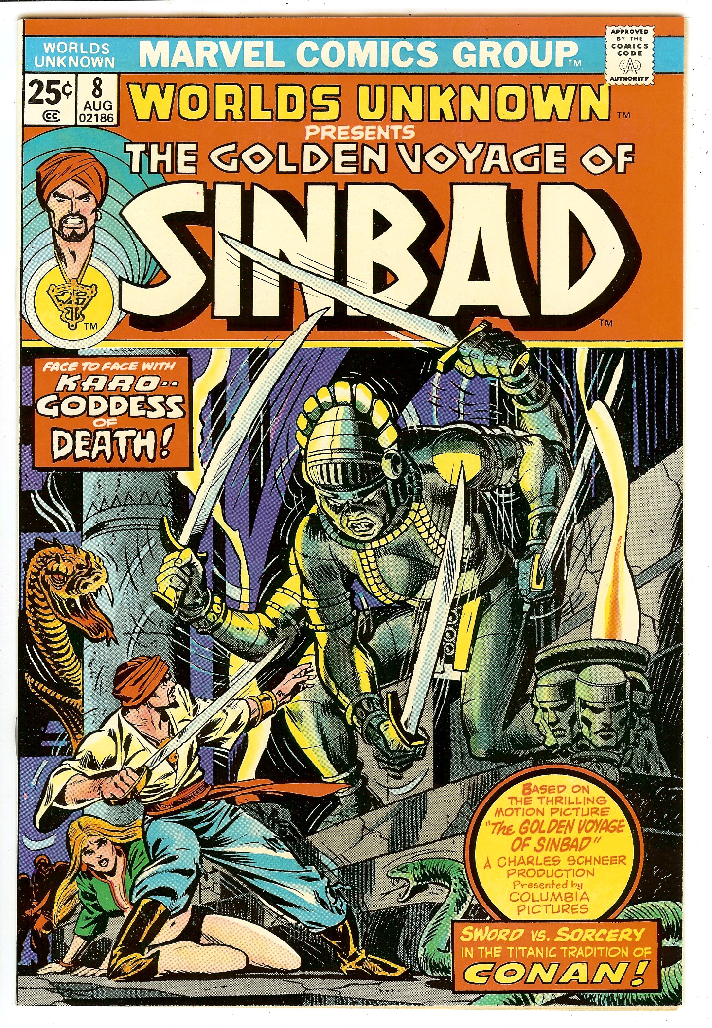 2nd Sinbad Story, "Golden Voyage of Sinbad" Movie Adaptation, Last Issue 8/74 G.Tuska Art G.Kane Cover-